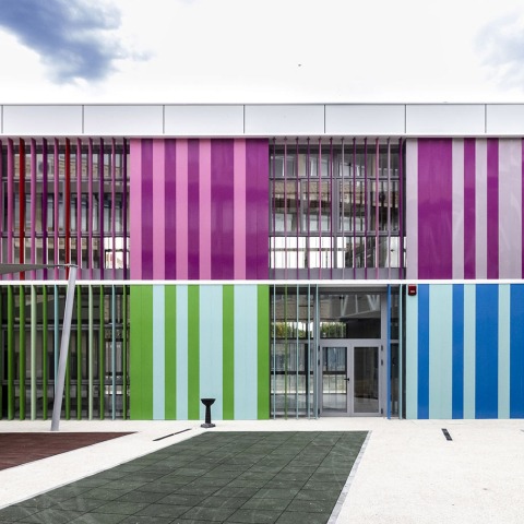 El proyecto cuenta con dos niveles y destaca por el degradado de colores que usa, destacando como intervención arquitéctonica sobre el resto de edificios del entorno como a su vez ser un espacio agradable y familiar para los propios niños.