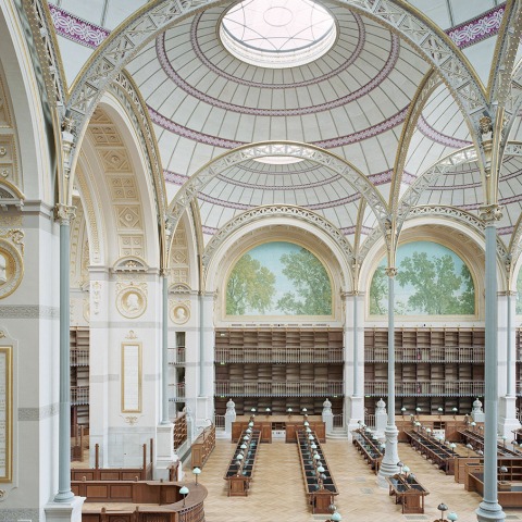El resultado del acuerdo negociado incluyó la gestión general del proyecto encomendada al estudio de arquitectura de Bruno Gaudin. La restauración de la Sala Labrouste, estructura inscrita en el ISMH [Inventario Suplementario de Monumentos Históricos] , fue confiada a Jean François Lagneau ACMH [arquitecto en jefe de Monumentos Históricos]. Las obras, que comenzaron en 2011, se dividieron en dos fases para permitir tanto la implantación del particularmente delicado emplazamiento de construcción mientras que, paralelamente, fuera posible mantener la biblioteca parcialmente abierta desde su acceso de la Rue Vivienne.