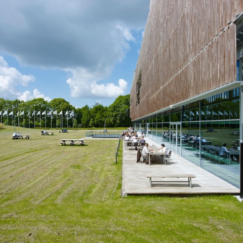 Mateo Arquitectura propuso para este proyecto, que se encuentra cerca de la ciudad de Zeist, cerca de Utrecht, una nueva ampliación en continuidad con el edificio actual de 25.000 metros cuadrados, y al mismo tiempo proyectó la recuperación de la zona verde en la que se asentaba tras realizar la construcción de un aparcamiento subterráneo de 25,000 m².