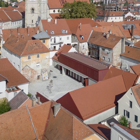 La revitalización de la antigua cristalería, junto con las calles y plazas adyacentes, aporta nuevos espacios públicos de alta calidad al centro histórico de Ptuj. Estos espacios sirven como vínculo entre la colina del castillo, la ciudad y el río, fomentando una ciudad vibrante. Dos puntos focales clave son la plaza Vrazov trg, más formal, por un lado, y el ambiente íntimo de Old Glassworks, por el otro, que proporcionan un contraste armonioso. Vrazov trg sirve como epicentro de eventos culturales y se erige como un hito urbano importante. Por otro lado, Old Glassworks, con su patio, posee inicialmente un carácter introvertido pero puede abrirse perfectamente a la calle a través de sus grandes puertas en voladizo durante diversos eventos, transformándose en una animada plaza pública. En conjunto, dan forma a un espacio versátil ideal para fomentar nuevas iniciativas culturales, ya sea para uso diario o para ocasiones especiales.