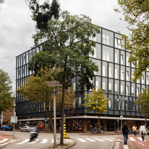 En la esquina de Donker Curtiusstraat y Van Hallstraat, Studioninedots creó la sorprendente transformación de un destacado edificio de oficinas de 1964. Diseñado por Ae.G. y J.D. Postma, el edificio Westerpark Industry and Trade añadió variación a los edificios industriales existentes a lo largo de Kostverlorenvaart, con su función de oficina, volumen y fachadas de muro cortina de luz. Desde entonces, el complejo en forma de U formó un grupo junto con los edificios Graficolor y Wodan (antiguas fábricas de antes de la guerra que ahora están catalogadas como patrimonio histórico) que gira el edificio hacia adentro desde la calle. Debido al mal estado del edificio desde el punto de vista técnico y energético, fue necesaria una profunda renovación.