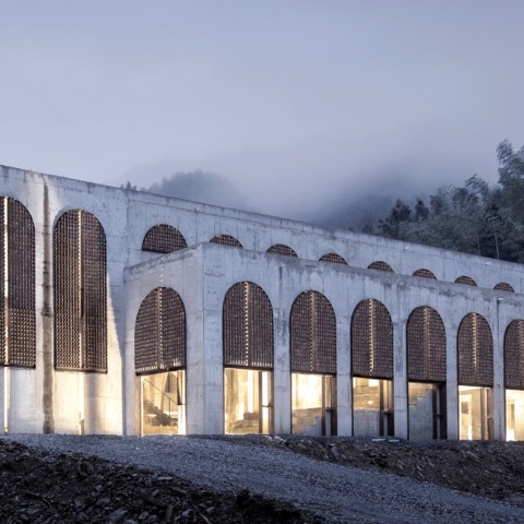 El encofrado de hormigón no se fija mediante un perno de montaje ordinario en la construcción de la estructura de hormigón en el horno de madera BingDing, sino que se apoya en las estructuras de acero fuera de la forma de hormigón para la fundición. Además del hormigón de cara clara, el material principal del horno de madera BingDing es solo los ladrillos del horno. Los agujeros de las ventanas arqueadas sobre el segundo piso del proyecto del edificio forman patrones de luces y sombras con la celosía incrustada por ladrillos de horno.