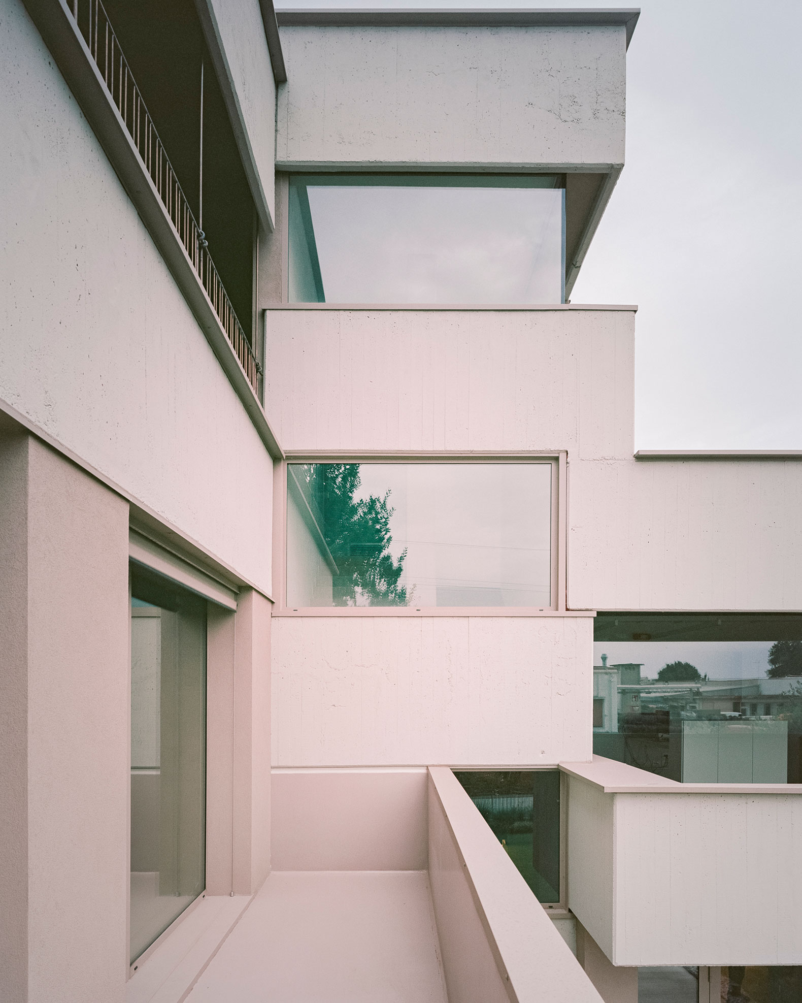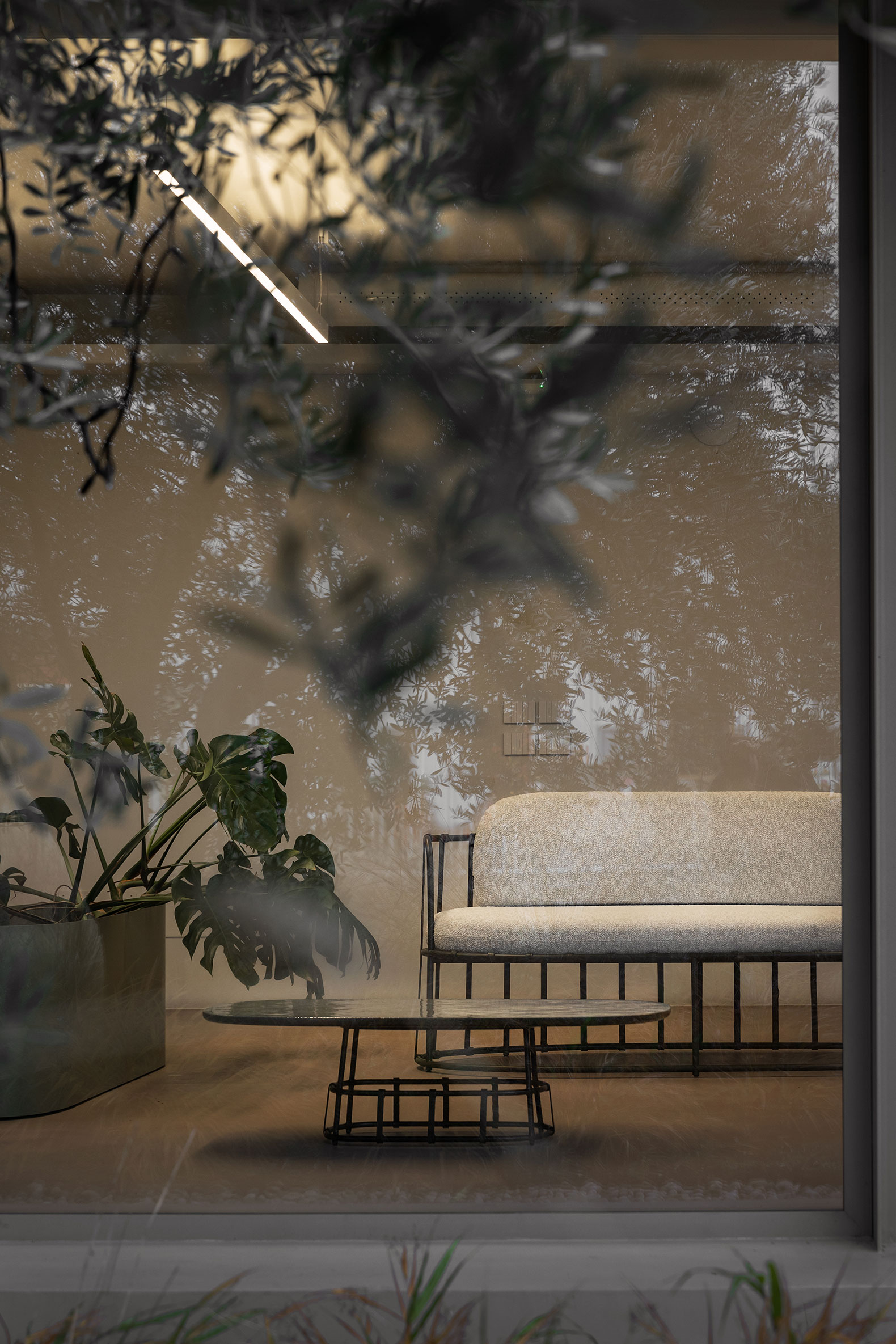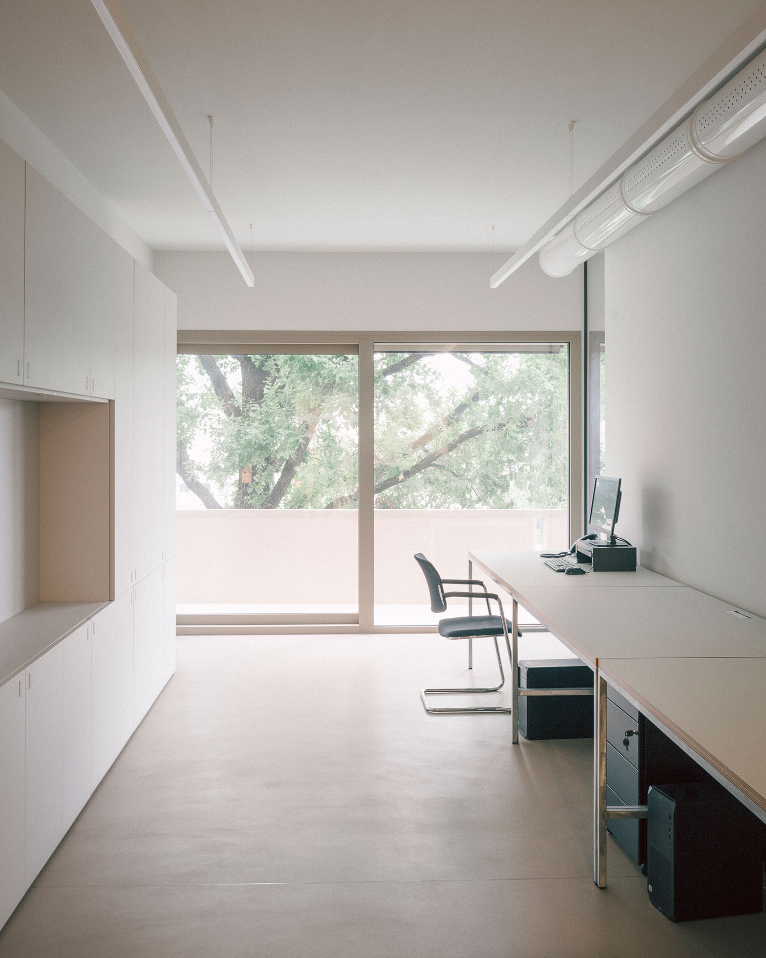 El diseño mantiene la configuración general de la estructura, eliminando todas las particiones internas no estructurales para crear un espacio fluido y abierto. Se han añadido grandes aberturas continuas a la fachada, que enfatizan la relación entre el exterior y el interior y mejoran la iluminación natural en los espacios de trabajo.