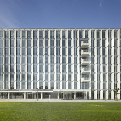 Distintivos paneles verticales sólidos con aletas inclinadas, de acuerdo con la orientación al sol e integrados en el diseño del muro cortina, emergen tanto de la fachada sur como de la oeste para reducir al mínimo la ganancia de calor solar y dar equilibradamente sombra y comodidad en los interiores. La combinación de paneles de vidrio en aleta, la visión clara y la caja de sombra dan a las fachadas sur y oeste un ritmo singular, textura y articulación. Pequeños balcones añaden expresión a los lados sur y oeste del edificio.