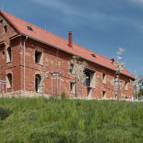 La casa combina bajo y alto. Hemos insertado una nueva capa actual, que difiere en su propósito de todas las anteriores. Se mantiene un espacio ventilado entre la estructura nueva y la original, y las estructuras no se tocan. La nueva estructura a veces se desplaza ligeramente de la anterior. Las ventanas no encajan con precisión en las aberturas de la pared vieja, y en algunos lugares, la pared vieja también está presente en el interior. Hay un entrelazamiento visual de los dos mundos. El nuevo edificio penetra a través de aberturas en la pared vieja, y por el contrario, la pared vieja entra a través de ventanas nuevas.