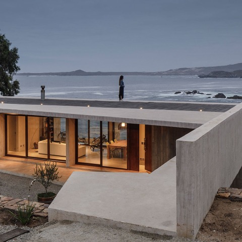 Por lo tanto, un programa doméstico básico compuesto por tres dormitorios, dos baños, una sala de estar, una cocina integrada y área de comedor, además de una pequeña bodega al aire libre, se presenta a lo largo de una losa de hormigón armado expuesto de 20 cm de espesor. La losa enmarca una serie de elementos arquitectónicos: la entrada y la escalera hacia la casa, el puente hacia el techo, la viga que lo endurece y que funciona simultáneamente como la barandilla, el techo que es también el alero de un espacio intermedio que precede al entrada, las paredes estructurales transversales que dividen los espacios interiores, la escalera que conduce al mar y la viga que la sostiene; como si todos estos elementos fueran inseparables e integrados.