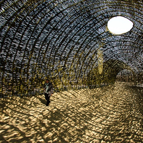 Dentro del "gusano de arena/Sandworm" te encuentras rodeado por una espectáculo natural de luces y sombras. Me encontraba alucinado. Cómo puedes crear tal belleza con unos materiales tan sencillos. El artista cree que el control de la Arquitectura va en contra de la Naturaleza y por tanto también en contra de la propia Arquitectura. El ambiente construido por el hombre es un mediador entre la Naturaleza humana y la Naturaleza en sí misma. Para ser parte de ello, el hombre debe ser débil. Para el artista finlandés Marco Casagrande diseñar no es suficiente. Diseñar no debe remplazar la realidad. El edificio tiene que crecer más allá de su localización, tiene que reaccionar con su entorno, tiene que ser una reflexión de la vida y también en sí misma"