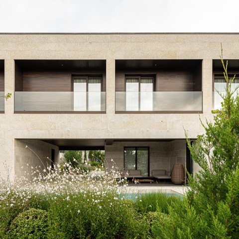 Lo construido y el jardín no se pueden entender como entes separados… fueron diseñados por dos personas diferentes, pero buscando un objetivo único. A veces los huecos de los macizos de piedra dejan ver fugas de verde, pero en otras ocasiones los paños de hiladas de granito gallego son un fondo que nos pone en primer plano a las abejas picoteando las flores.