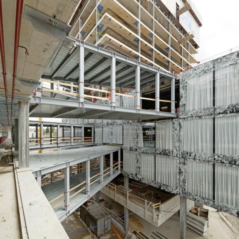 El programa híbrido ocupa dos edificios, uno de gran altura y otro de cinco pisos. Los edificios están unidos por una serie de pasarelas que permiten que las diversas oficinas, los servicios de los empleados, las instalaciones de venta al por menor, los restaurantes y las cafeterías del complejo sean a la vez de fácil acceso y estén interrelacionados de manera fluida.