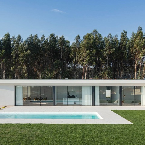 La casa está ubicada en Vila do Conde, en un territorio rural con varios campos de cultivo y algunos eucaliptos, en el norte de Portugal.