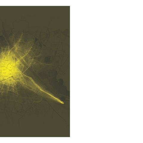 La primera imagen de los mapas reflejan 915.353 entradas individuales (Identificación de viaje individuales, marcas de tiempo, longitud y latitud) de los viajes de taxis durante el 25 de julio de 2011, en la ciudad de Viena, Austria. La segunda imagen muestra los mismos datos mapeados en diferentes períodos del día.