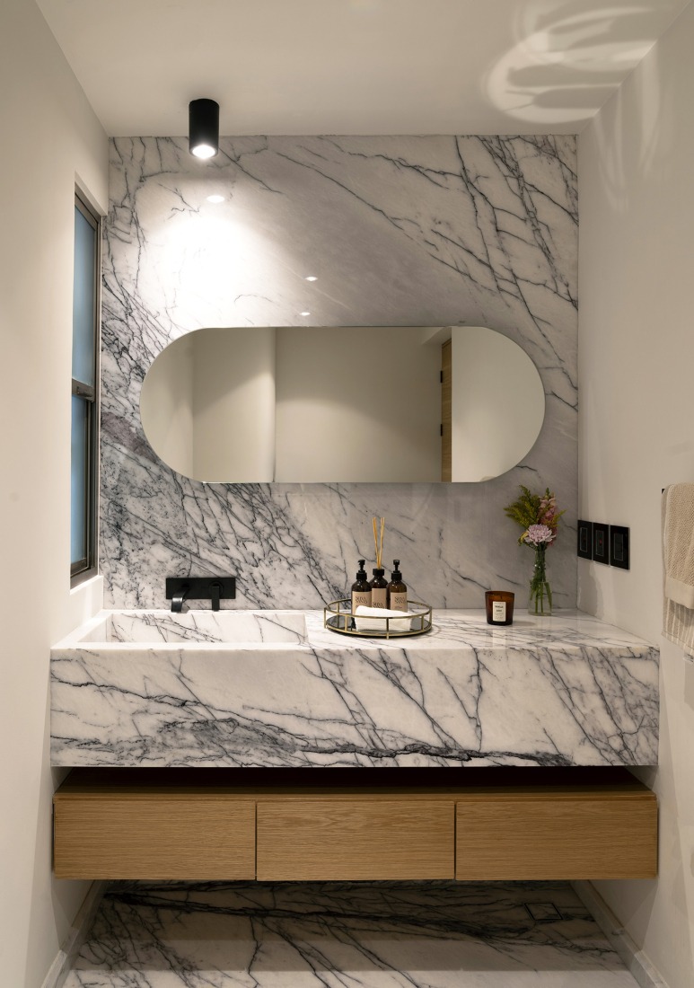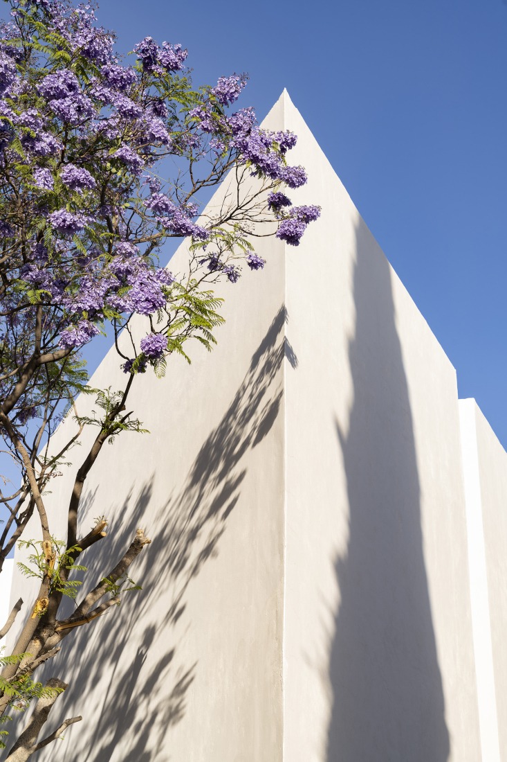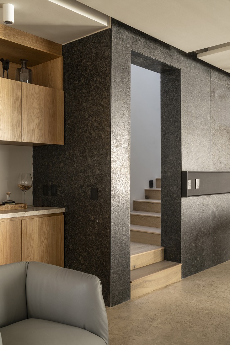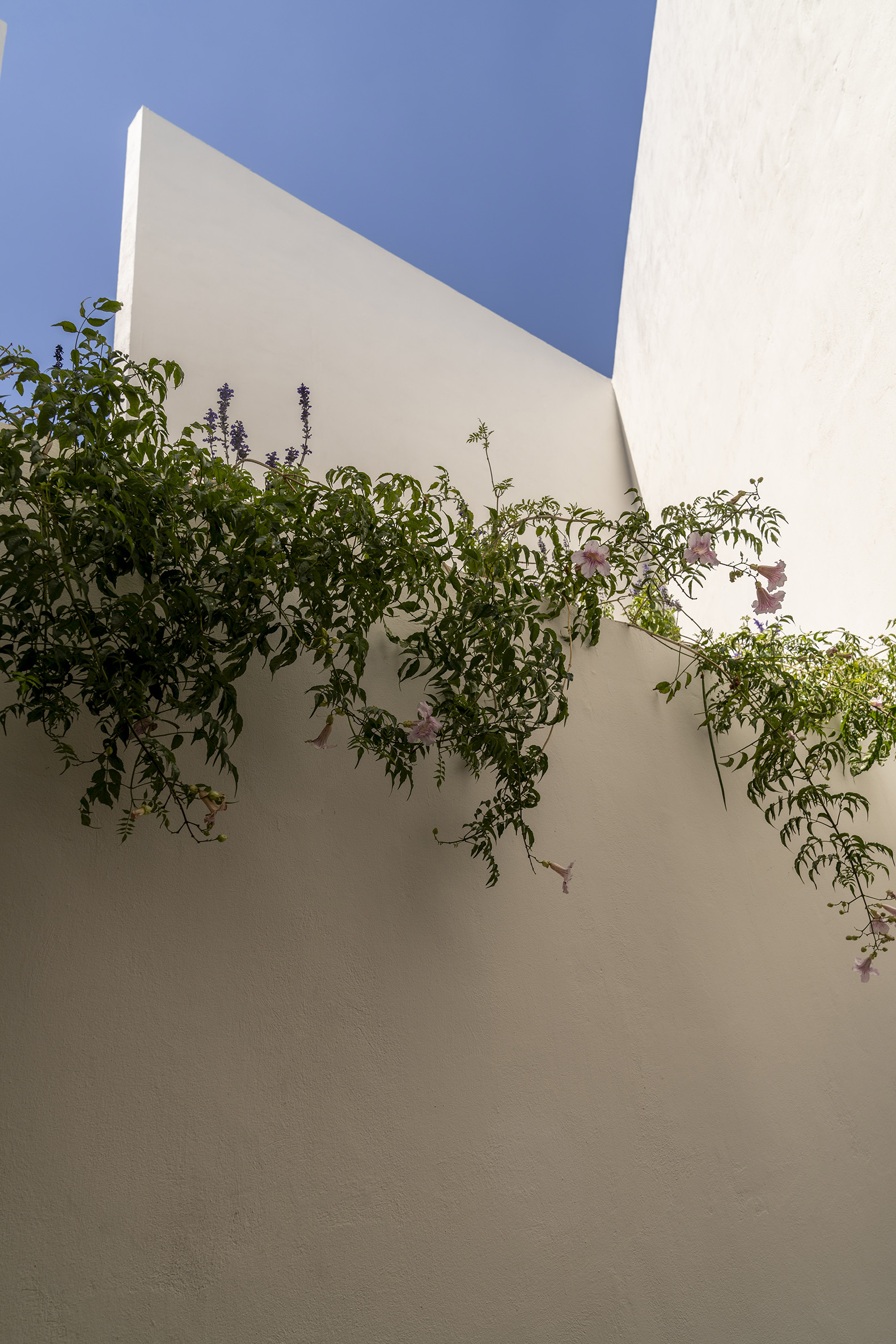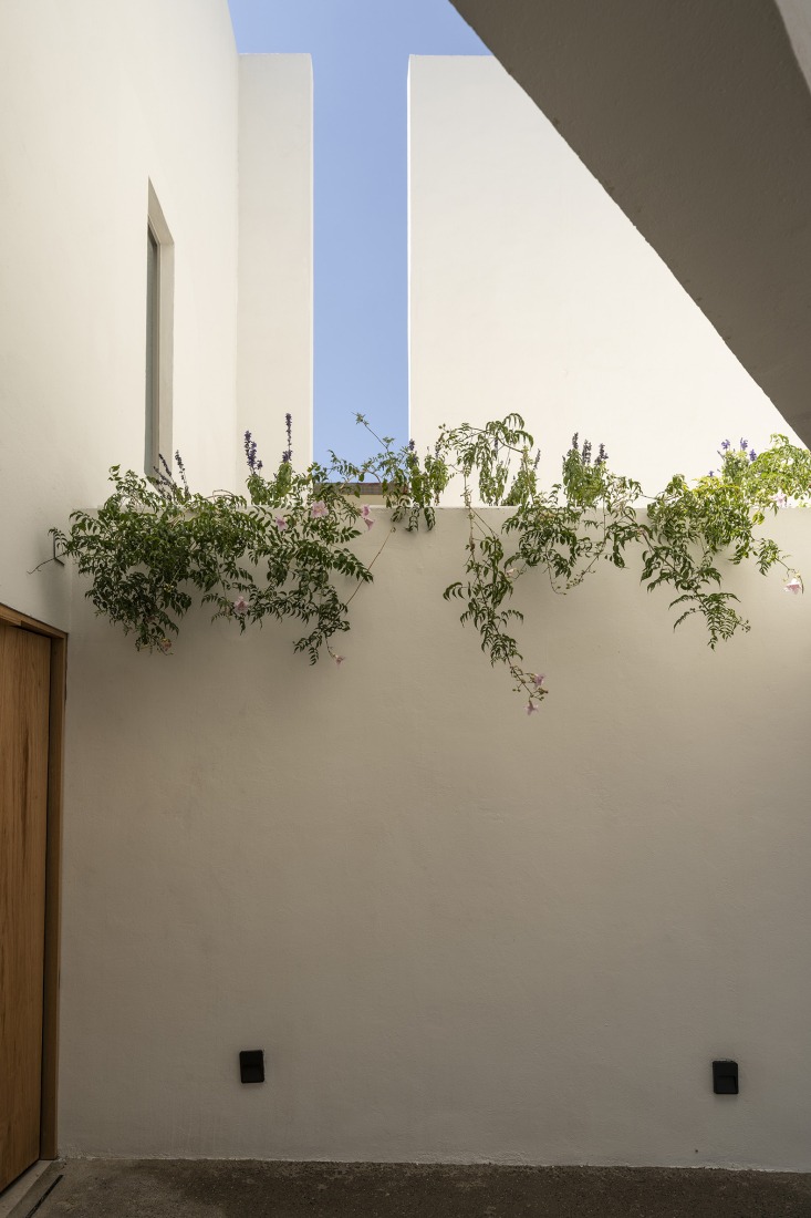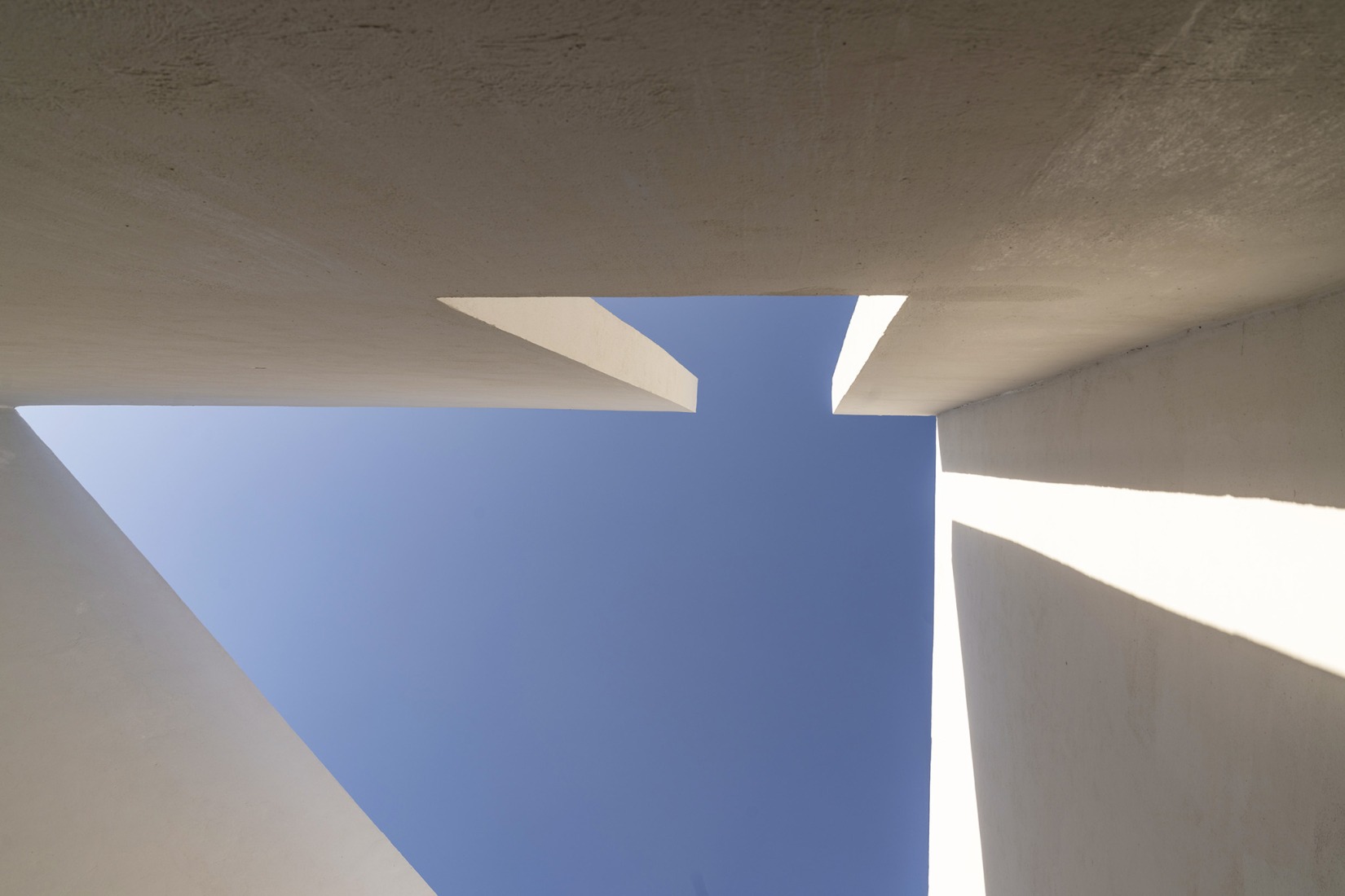 Uno de los ejes conceptuales del proyecto es la relación cuidadosamente modulada con el cielo. Cada ambiente establece una intensidad específica de apertura hacia lo celeste: franca en las zonas sociales, más contenida en los espacios íntimos, siempre mediada por la luz natural como herramienta compositiva y atmosférica. Esta lectura se traduce en gestos precisos, como el acceso principal, concebido como un vestíbulo a cielo abierto que enmarca la bóveda celeste y convierte la llegada en un ritual determinado por la hora, el clima y la estación.