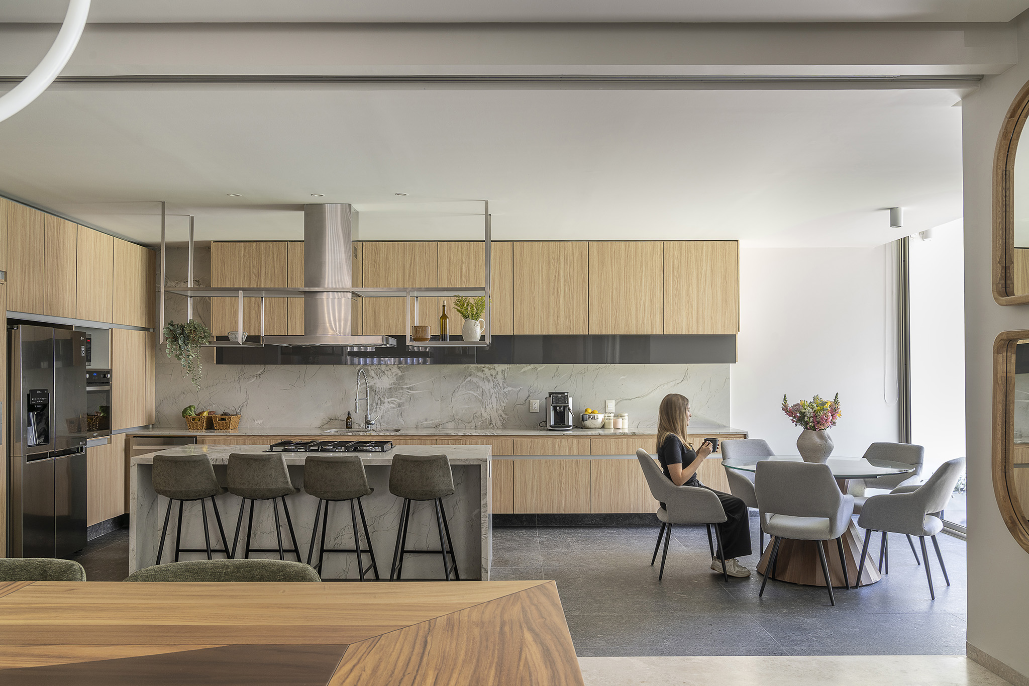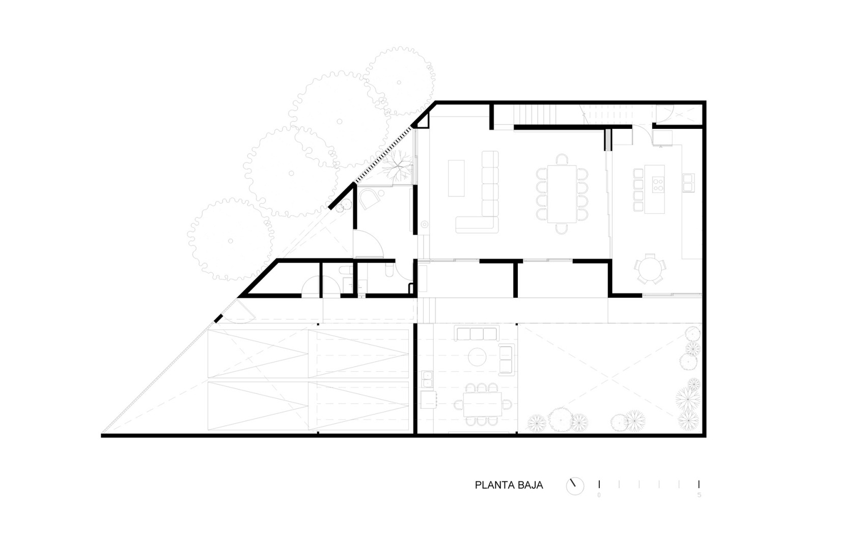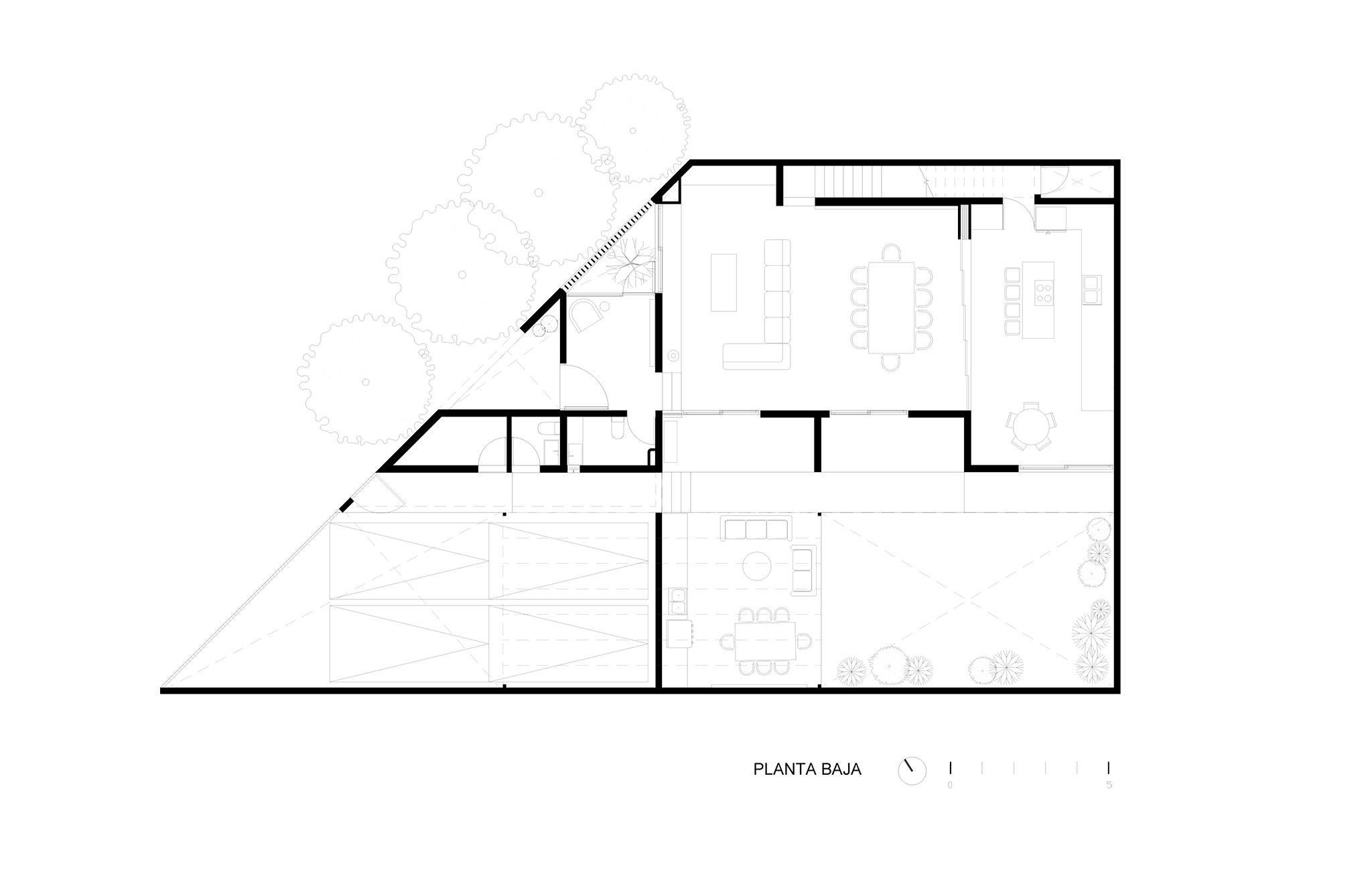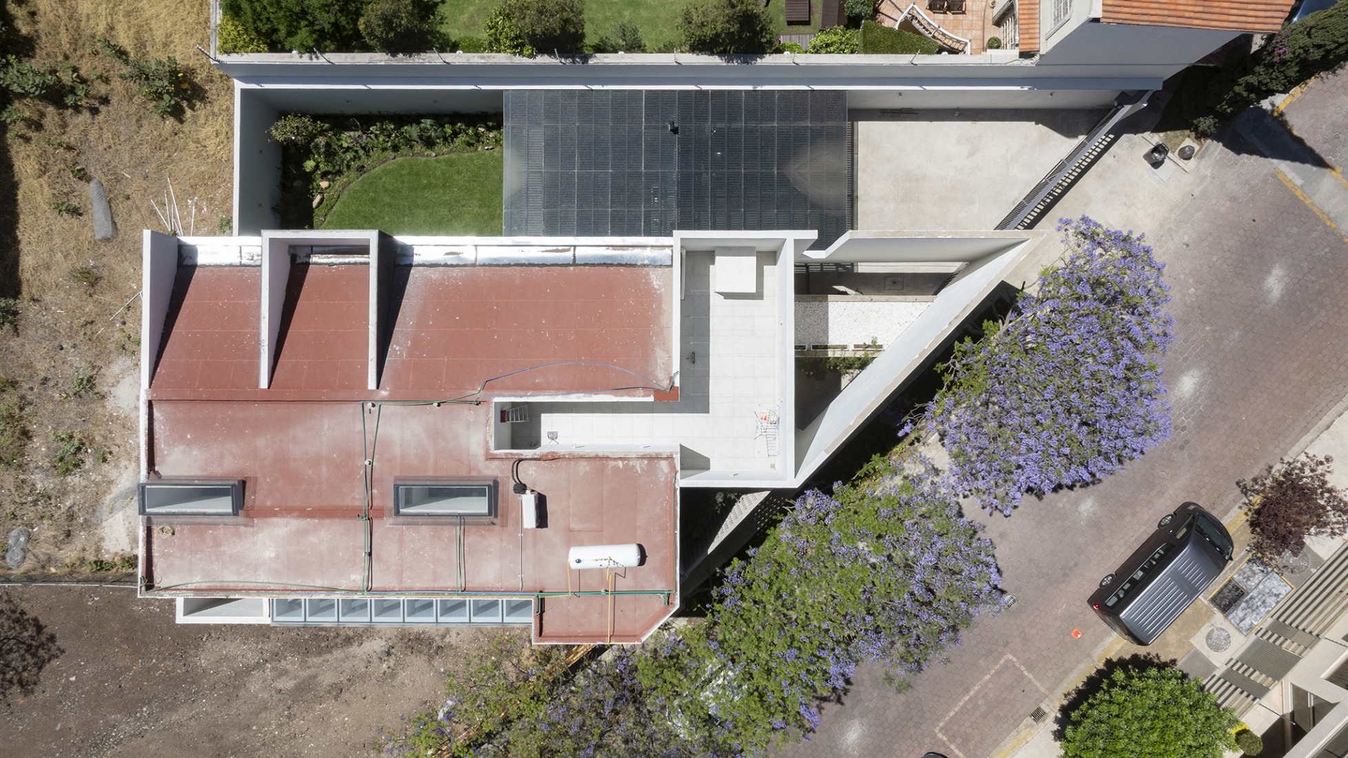 Lejos de imponerse al terreno, la casa se asienta en el centro del predio, permitiendo que los espacios exteriores funcionen como transiciones vivas entre los distintos núcleos habitables. Esta disposición refuerza un equilibrio entre autonomía funcional e integración paisajística, generando un continuo entre interior y exterior que amplía la experiencia doméstica.