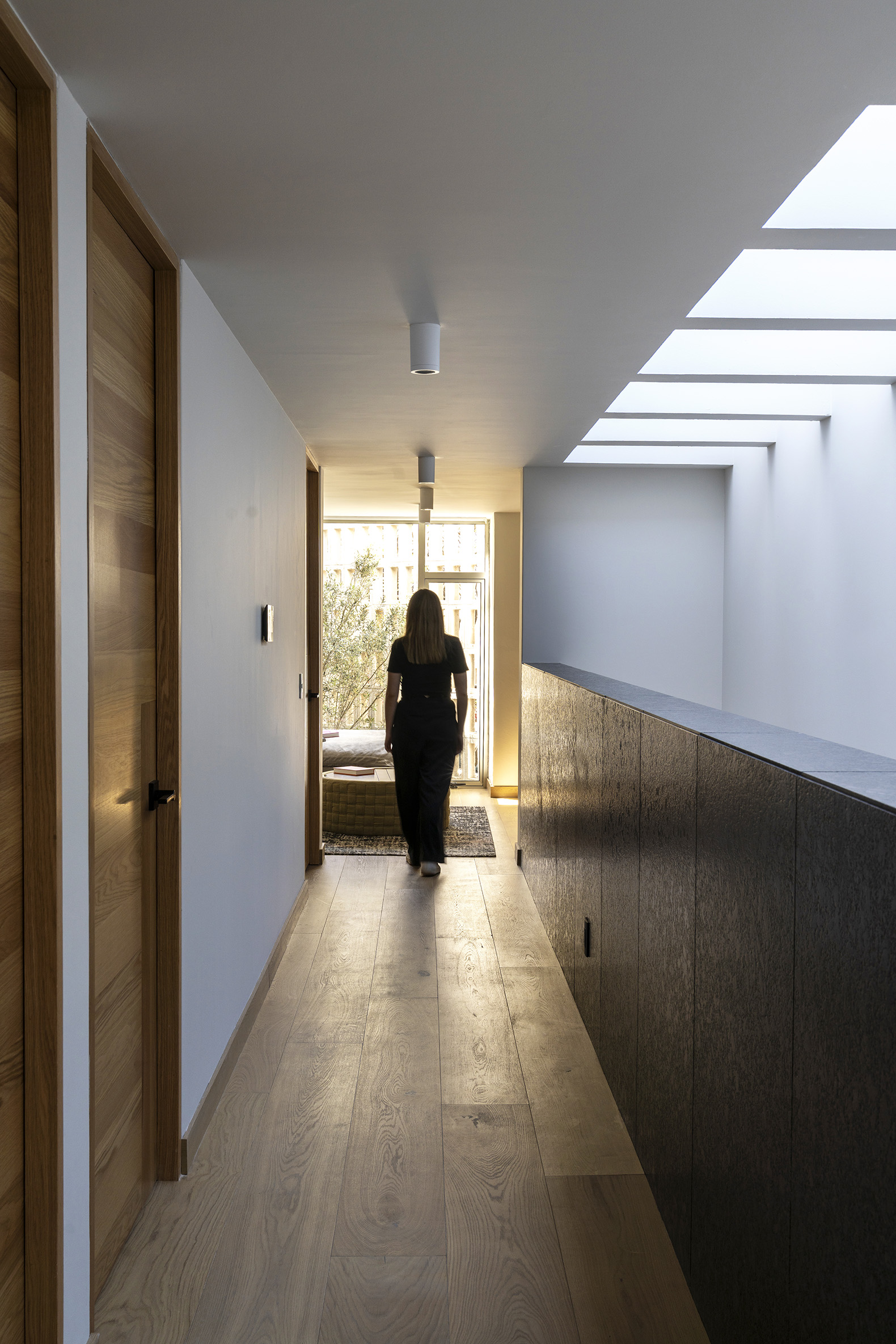 La Casa Auseva llevada a cabo por el equipo de Graus establece una cuidadosa relación con el cielo. La apertura hacia la bóveda celeste es estratégicamente modulada, entendiendo la luz natural como un elemento más del proyecto, que refuerza la calidad atmosférica de los ambientes interiores.