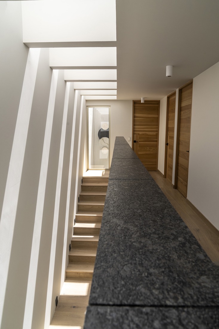La elección de materiales —contenida, duradera, esencial— subraya la voluntad de atemporalidad y sobriedad. La claridad en la organización espacial y la relación constante con la luz natural definen una arquitectura que prescinde del ornamento y privilegia lo fundamental: habitar el tiempo, el espacio y el paisaje.