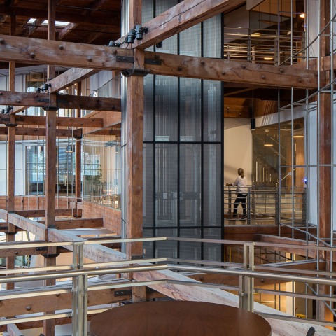 La Tienda está conectada por una escalera arquitectónica abierta y cuenta con una amplia área de comodidades y áreas comunes, un espacio variado para reuniones y oficinas, y una terraza en la azotea. Esta renovación conserva la arquitectura clásica de Warehouse District del edificio existente al tiempo que incorpora elementos modernos. El espacio lleno de luz cuenta con techos altos con vigas a la vista, grandes ventanales, una colección de arte contemporáneo y un plan de piso abierto y abierto.