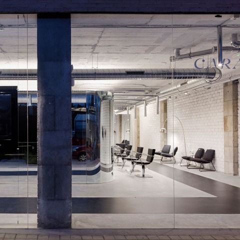 En el invierno de 2015 recibimos el encargo de la reforma de un local para adaptarlo a un nuevo uso como centro de estética. Nuestra intención fue la de concebir un lugar que, cumpliendo las funciones requeridas por el cliente, supusiera una experiencia para el usuario distinta a la comúnmente asociada a estos negocios. A través del recorrido dentro del espacio de la peluquería y gracias a una superficie espejada continua, con zonas convexas, cóncavas y planas, el proyecto pretende generar en el visitante diferentes sensaciones dependiendo de su posición y la imagen reflejada que obtiene en cada momento de sí mismo y su entorno.