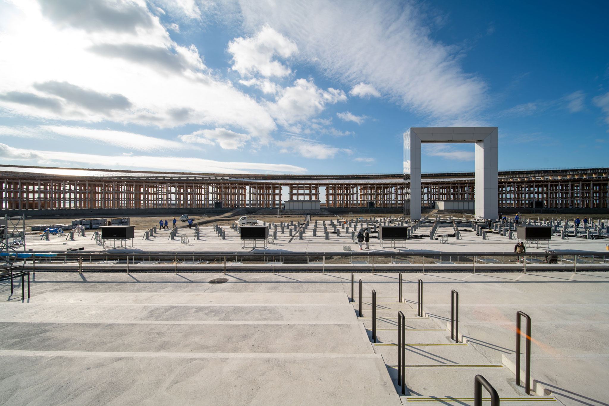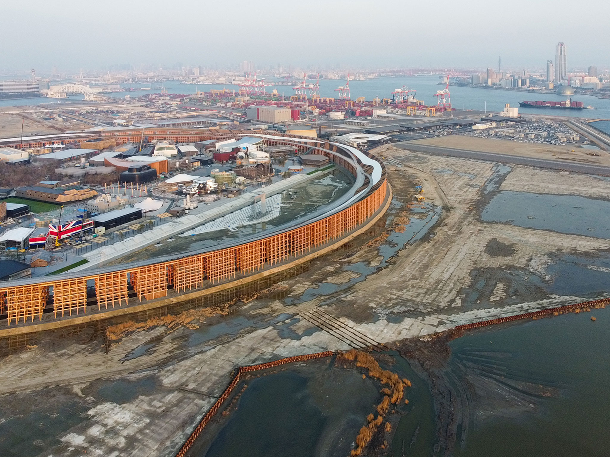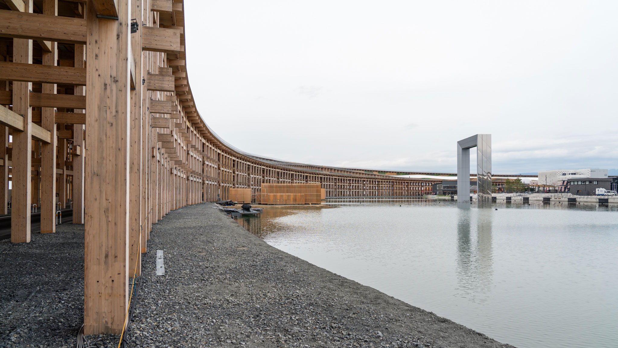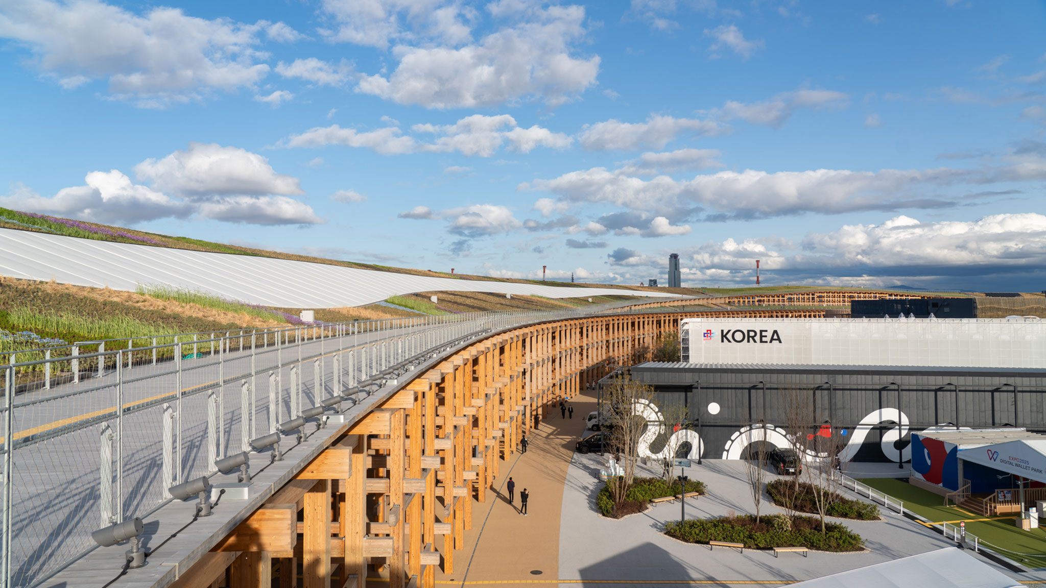 Posibilitando un movimiento fluido alrededor del sitio y ofreciendo a los visitantes un espacio cómodo protegido del viento, la lluvia y la luz del sol, El Gran Anillo simboliza el concepto de «Unidad en la Diversidad» entre los 150 países participantes de la Expo 2025 de Osaka.