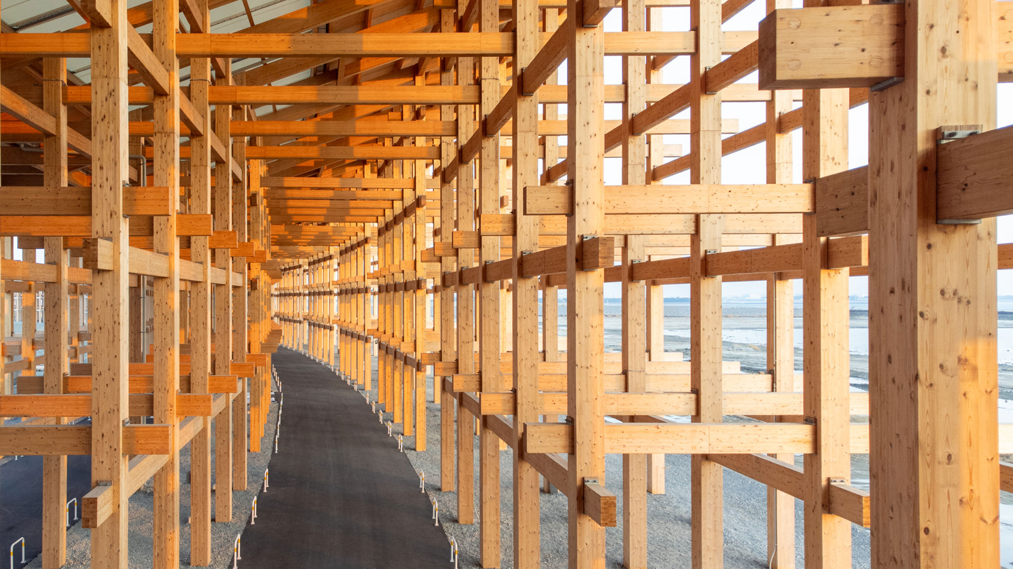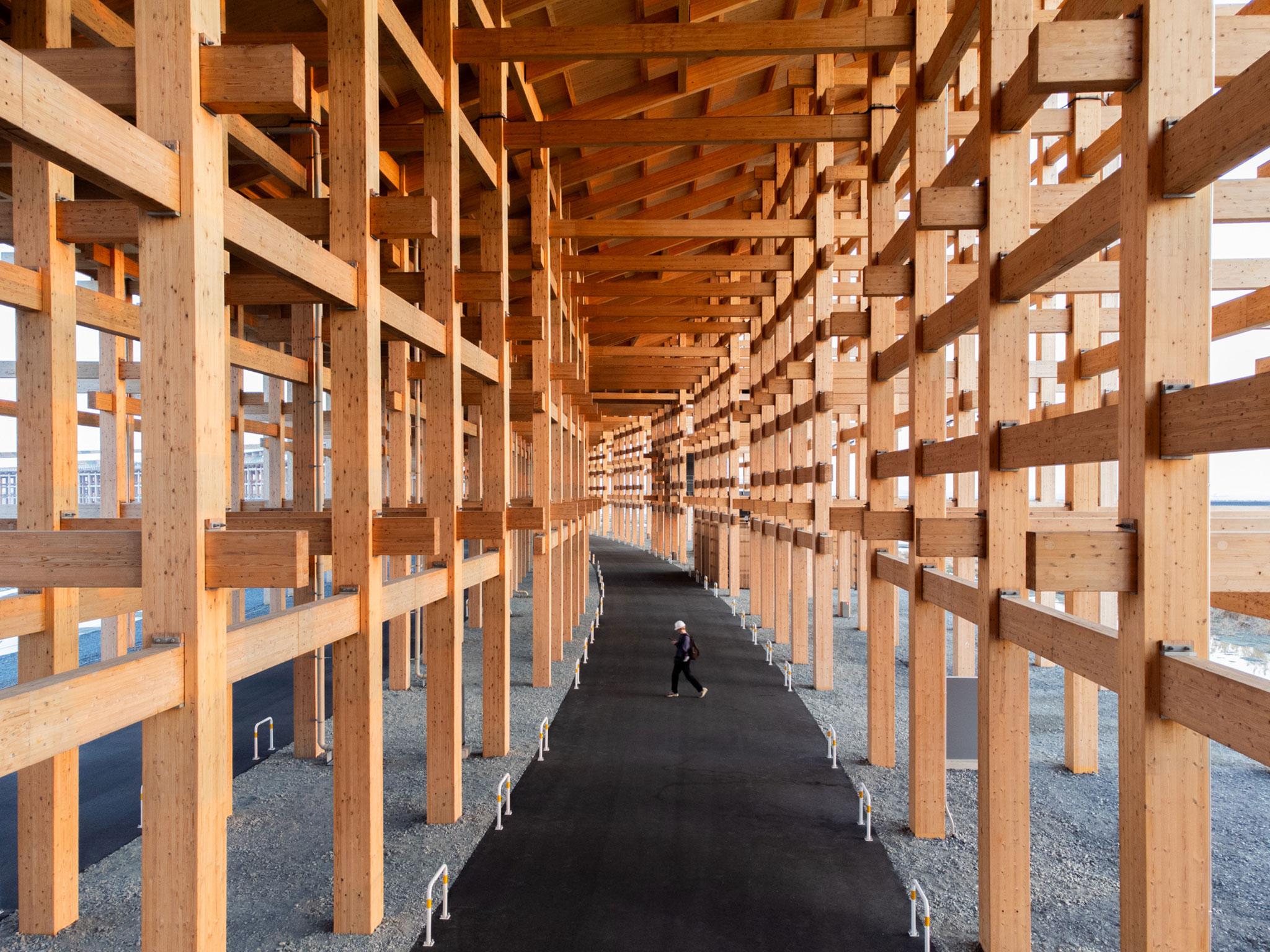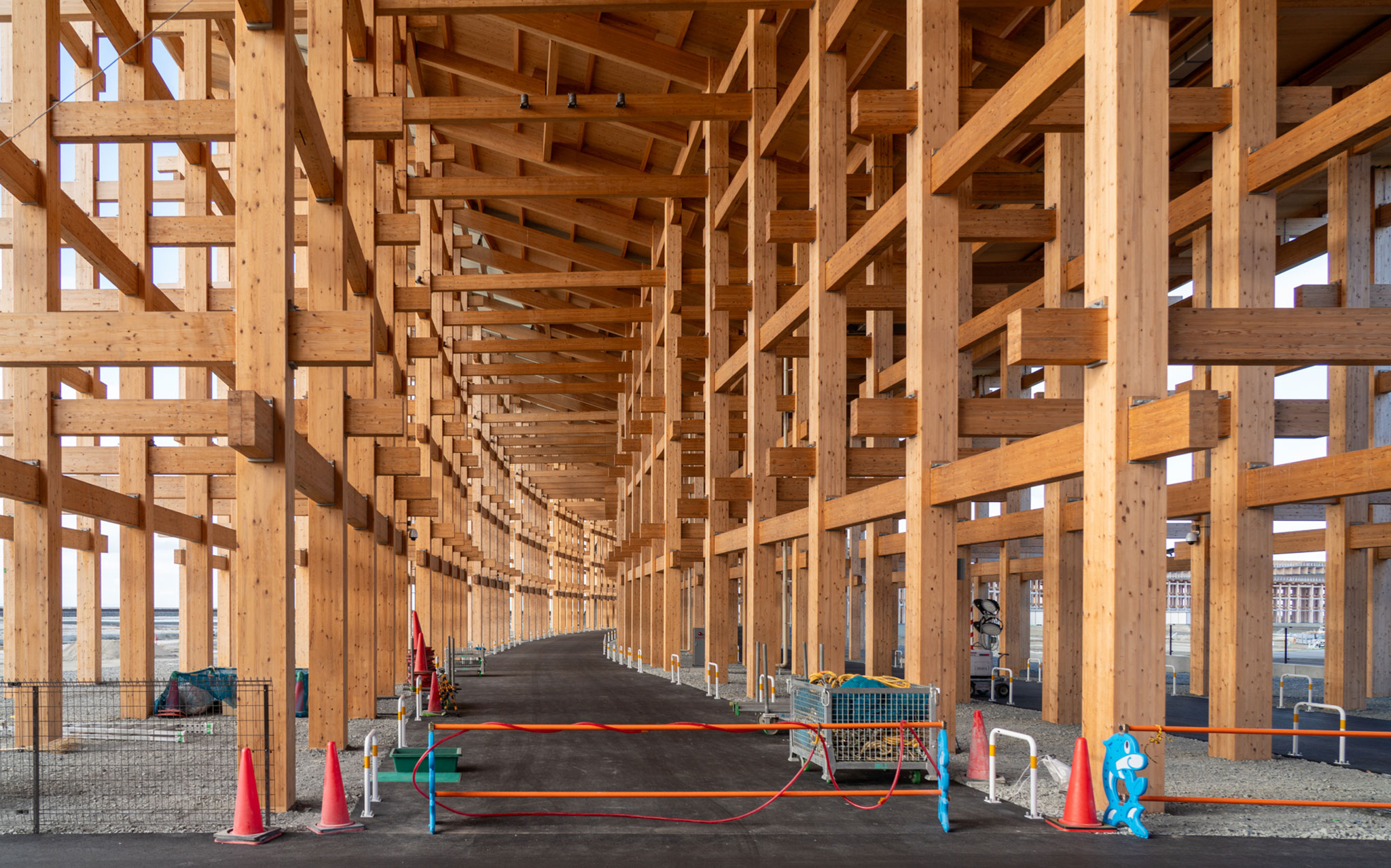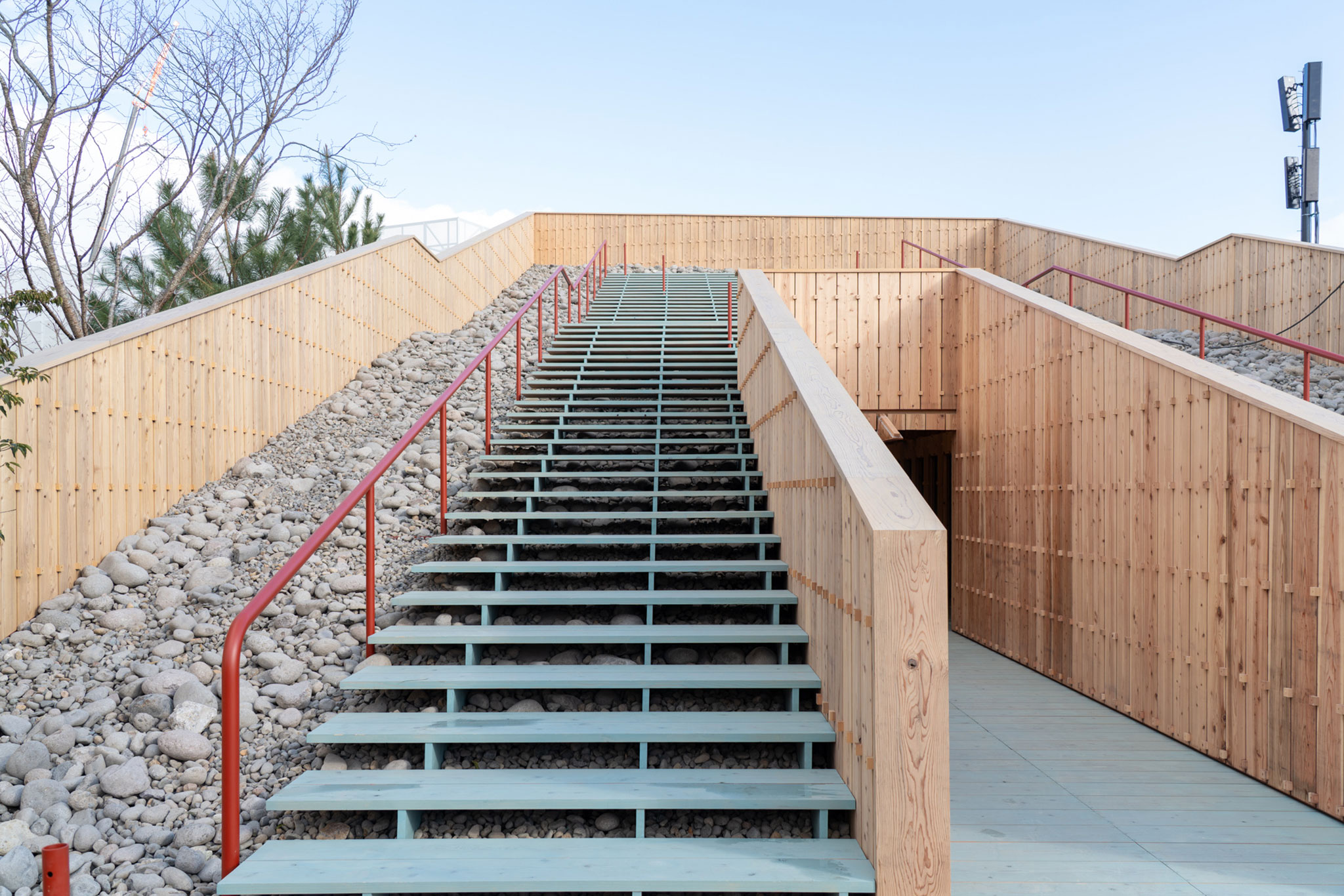 El proyecto planteado por el arquitecto Sou Fujimoto combina, para su ejecución, técnicas tradicionales japonesas con sistemas constructivos contemporáneos que refuerzan su resistencia sísmica. La estructura de madera, modular y desmontable, se inspira en el templo Kiyomizudera de Kioto y emplea conexiones «nuki» (sin clavos), reinventando la tradición con una mirada en el futuro. La típica conexión japonesa en la que una viga horizontal se inserta en un poste vertical, es comúnmente empleada en templos y santuarios.