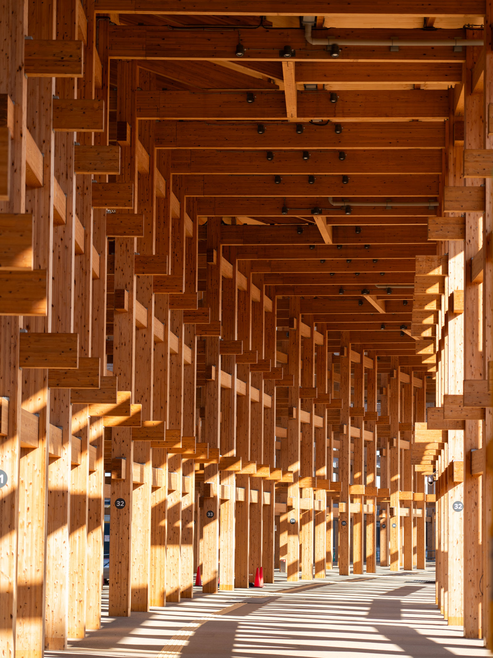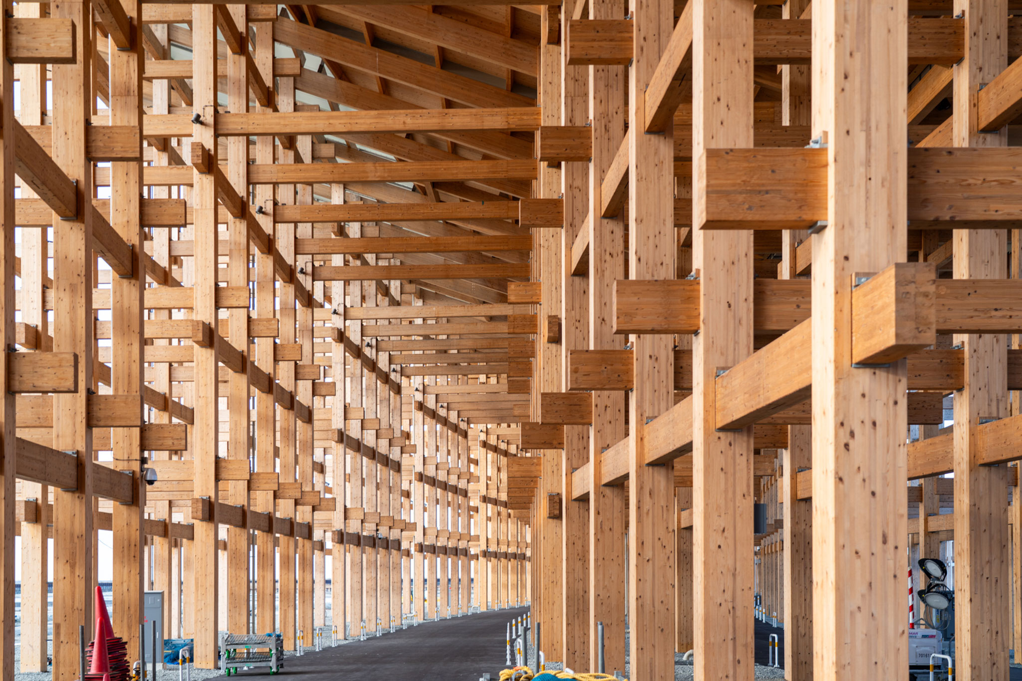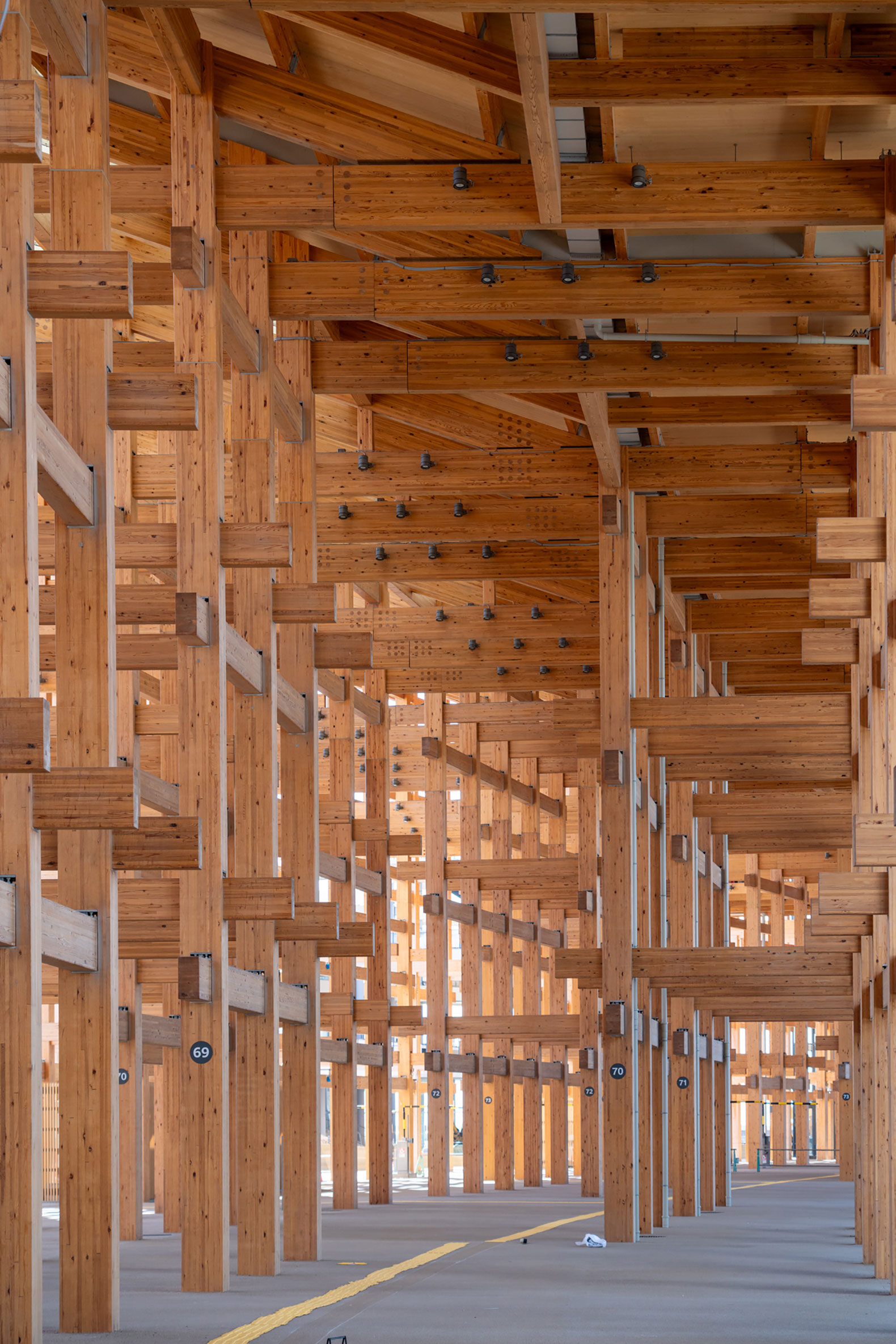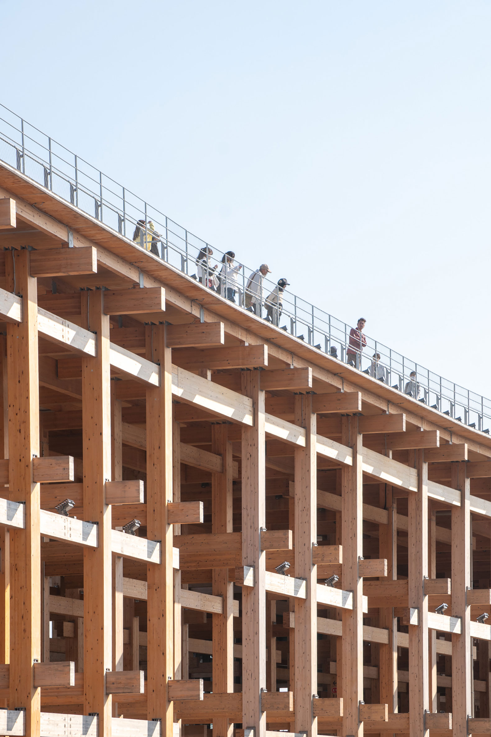 El proyecto planteado por el arquitecto Sou Fujimoto combina, para su ejecución, técnicas tradicionales japonesas con sistemas constructivos contemporáneos que refuerzan su resistencia sísmica. La estructura de madera, modular y desmontable, se inspira en el templo Kiyomizudera de Kioto y emplea conexiones «nuki» (sin clavos), reinventando la tradición con una mirada en el futuro. La típica conexión japonesa en la que una viga horizontal se inserta en un poste vertical, es comúnmente empleada en templos y santuarios.