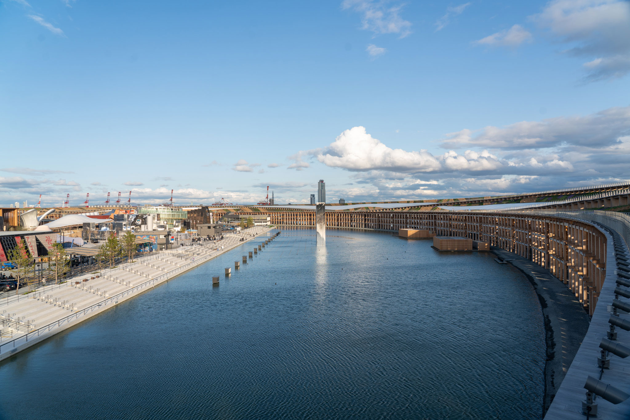 A través de un paseo elevando a casi 12m de altura, los usuarios pueden disfrutar excepcionales vistas del recinto, el mar interior de Seto y Osaka. La ruta de circulación, denominada «The Ring Skywalk», se accede a mediante escaleras mecánicas y ascensores.