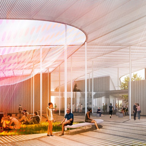 Under the Canopy, the site forms a continuous landscape, tying it in with its context. Lines from the site and its surroundings trace through to shape the design. Interwoven curved and straight sections seamlessly define inside and outside. The result is a portfolio of interconnected interior and exterior spaces, all with distinct spatial qualities and characteristics that trigger diverse activities and create informal opportunities for learning and interaction. Textures and landscape break the program down into smaller volumes to achieve a human, approachable scale. The future art museum is neither isolated nor exclusive, but open and permeable; not a static shrine, but a constantly evolving public event.