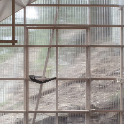 Las láminas de policarbonato translúcido encierran el volumen brillantemente iluminado mientras preservan un diálogo constante con el bosque circundante y la luz cambiante. El acantilado de piedra que protegió a los wannungine y los darkinyung durante incontables años invita al interior de la casa y se convierte simultáneamente en un muro y un paisaje.