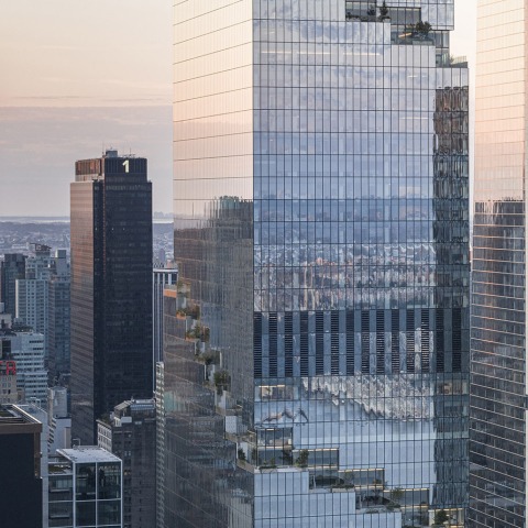 Desde el nivel de la calle, la torre atrae la atención hacia la cinta de vegetación que se extiende el High Line más allá de West 34th Street y hacia el horizonte de Manhattan. Con reminiscencias de un invernadero, la fachada de paneles de vidrio de la torre ofrece a los transeúntes una mirada al amplio y luminoso vestíbulo del edificio, adornado con obras de arte del estudio holandés DRIFT y un exuberante follaje, al que se puede acceder a través de entradas tanto en Hudson Boulevard como en 10th Avenue.