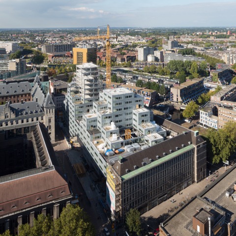 Para el Stadskantoor de Rotterdam, un nuevo edificio para el Ayuntamiento que albergará servicios municipales, oficinas, y unidades residenciales, OMA ha concebido un edificio modular que repite una serie de unidades que gradualmente se van retranqueando según se avanza desde la calle hasta dos cimas distintas. La composición del edificio en pequeñas celdas crea una forma impresionante y compleja visto desd el Colssingel, una de las arterias principales de Rotterdam, y permite un encuentro sutil y adaptado con el Stadstimmerhuis (un edificio municipal de 1953) con el que linda en dos de sus fachadas.