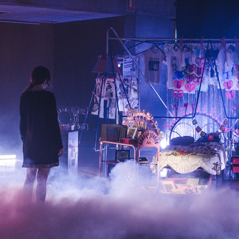 Como se construye un espacio para debatir sobre El Lado Oscuro de la Fiesta a través de instalaciones artísticas, performances y mesas redondas? El lado oscuro de la fiesta tiene que ver con lo efímero de los efectos, con lo que se queda fuera, con las jerarquías y rechazos que se construyen o con la sordidez del reconocimiento de los espacios cuando se encienden las luces. Para construir ese espacio Sticky Airs escoge un material que responde a estas características y que a su vez es parte de las fiestas, el humo: es efímero, cambiante, sólo es efecto. Y sin embargo no es usado sólo como efecto, sino como único material para definir y cualificar el espacio de El Lado Oscuro de la Fiesta; explorando y explotando sus capacidades.