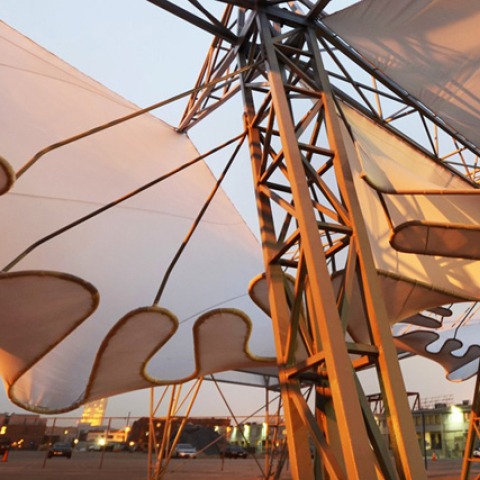 Las dos instalaciones anteriores, Netscape y Centerstage fueron diseñados para las ceremonias de graduación de la escuela en 2011 y 2012 respectivamente. Con SCI-Arc celebra su 40º aniversario, la escuela se encarga del nuevo pabellón para la fiesta posterior a su gala en Abril de este año 2013. Construído con el reto de renovar el pabellón Netscape existente, Oyler Wu Collaborative vio el proyecto como una oportunidad de tomar un enfoque completamente diferente al problema. Mediante la eliminación de los diez kilómetros de cuerdas cosidas que colgaban entre las vigas de acero elevadas, el proyecto se transforma tanto volumétrica como materialmente. Usando la mínima cantidad de nuevos elementos de acero y soportes de cables, una tela de licra se estira entre los elementos, confiriendo al pabellón una nueva vida y una inesperada presencia volumétrica.