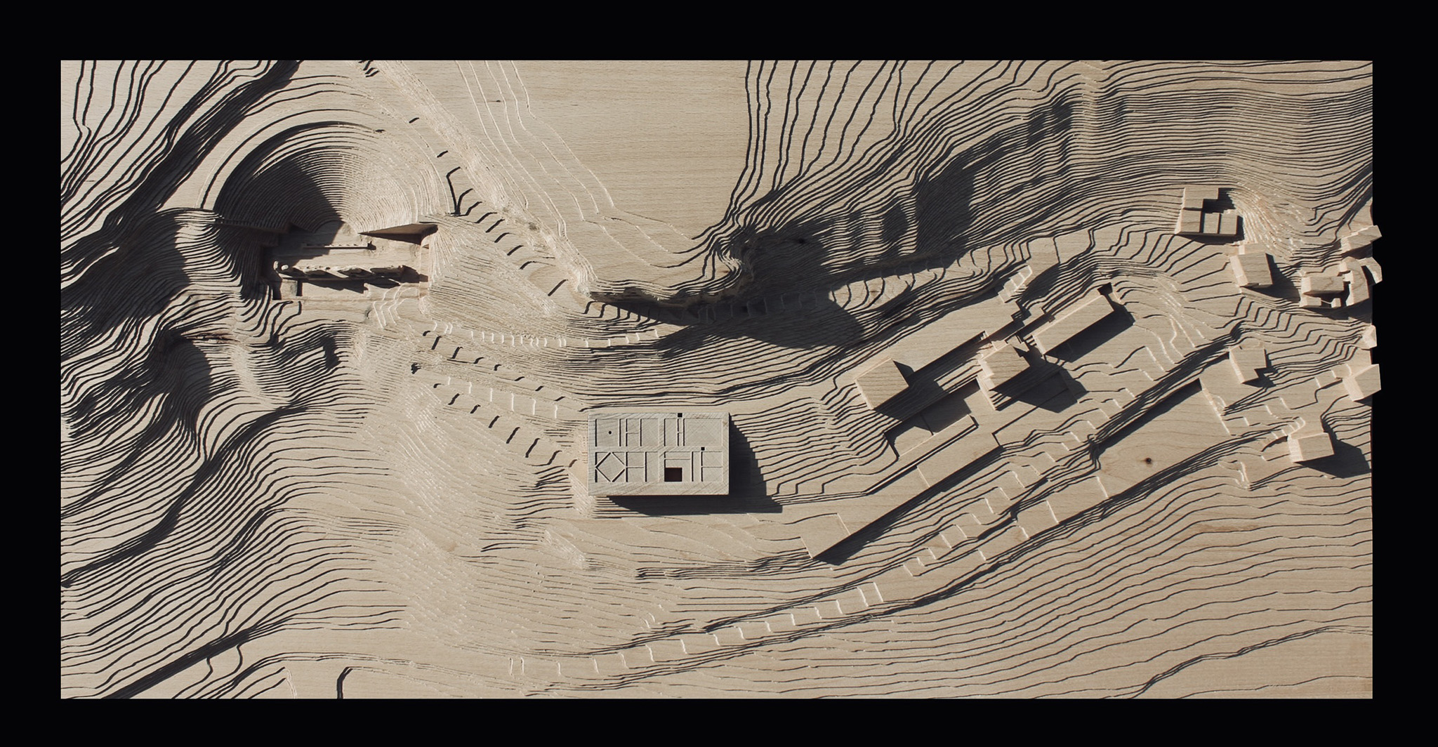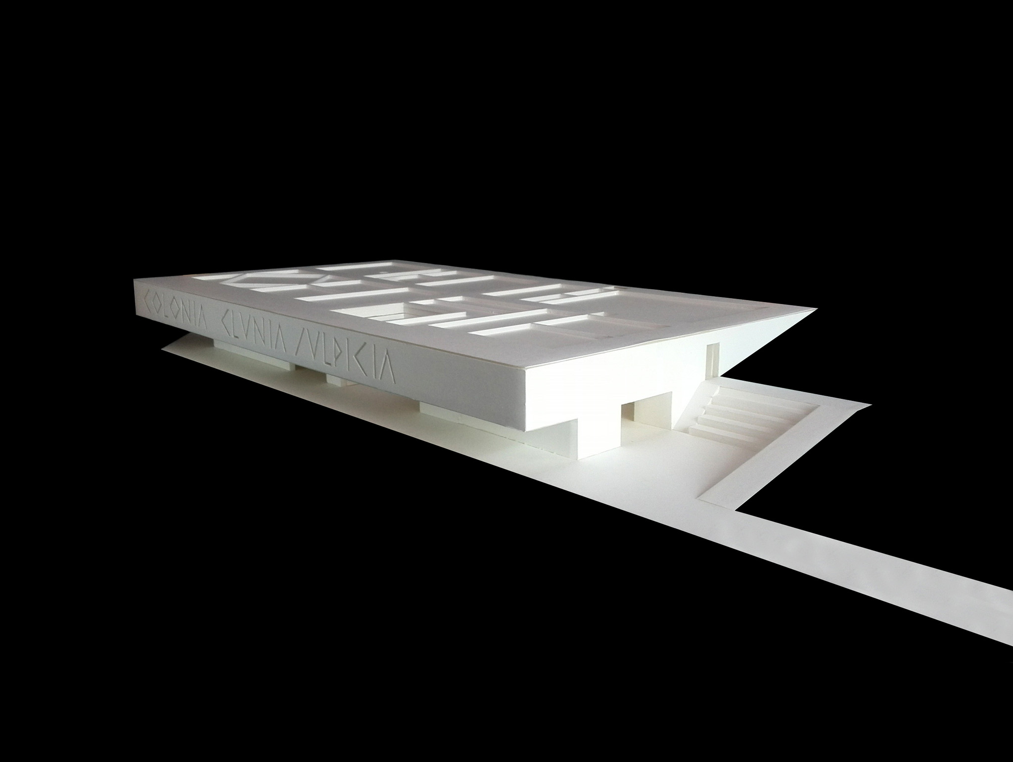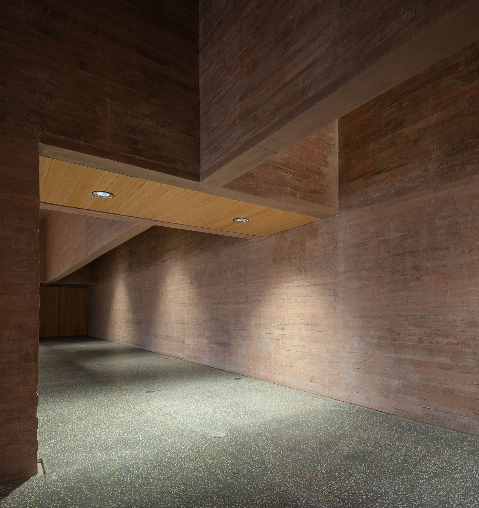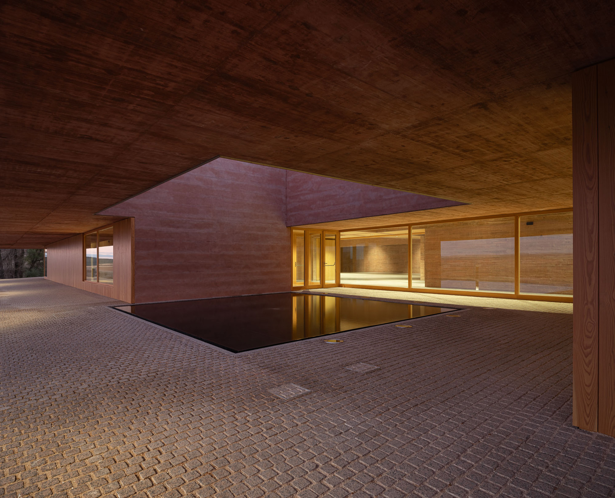 El objetivo es trasformar la secuencia de llegada, la acogida y la iniciación de la visita en un dispositivo territorial, paisajístico y arquitectónico. En la distancia se percibe como una plataforma topográfica, una excepción geometrizada en la pendiente natural del paisaje, integrada, apropiable y accesible. En el interior, como un espacio que surge de la tierra, cueva o abrigo que dialoga con el agua subterránea que abastecía a la ciudad romana.