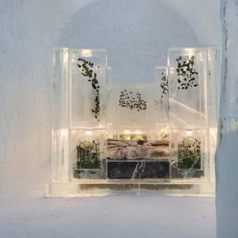 Por primera vez en la historia del hotel se ha utilizado un material que no es hielo ni nieve, flores y plantas. Las flores impregnan todo el mobiliario, por ejemplo en forma de bloque de hielo alrededor de la cama con hojas de abedul y una lámpara de techo en forma de corona de flores. Todo en la habitación recuerda al solsticio de verano, una de las tradiciones más queridas de Suecia.