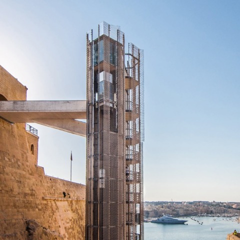 Este ascensor panorámico de veinte pisos de altura, encargado por la Organización para la Regeneración del Gran Puerto y diseñado por AP, se encuentra a las afueras de la ciudad fortificada de La Valeta. La Valeta está siendo objeto de importantes mejoras desde que la isla se prepara para albergar la presidencia de la Unión Europea en 2017. Además la ciudad ha sido recientemente nombrada Capital Europea de la Cultura para el año 2018.