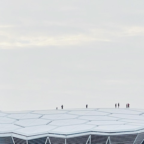 El auditorio cubierto funciona como el gran zócalo sobre el que emerge la torre más alta. Su piel exterior se pliega a través de la geometría hexagonal y se despega del suelo permitiendo los accesos al edificio. El espacio del vestíbulo queda comprendido entre la piel exterior y la sala de conciertos.