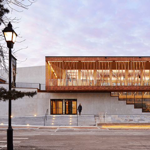 Organizado como una agrupación similar a una aldea formada por diferentes volúmenes que rodean un núcleo central, la forma del edificio resuena con el carácter de centro de Glencoe. Dos espacios: uno de actuación en el escenario principal del teatro y un lugar más pequeño donde se usan innovadoras configuraciones de asientos y la caja negra para maximizar la sensación de intimidad entre los actores y el público y para mejorar la experiencia de inmersión de las producciones de los escritores.