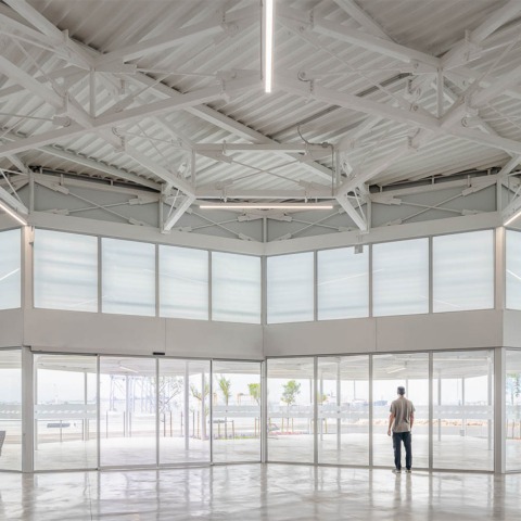 Ejecutado en un corto espacio de tiempo y de manera fiable. El tiempo es dinero siempre, especialmente cuando se trata de ocupar un muelle de puerto con una obra. Además, una construcción rápida evita molestias al ciudadano y agresiones continuadas al paisaje y al medio. Su construcción mediante arquitectura industrializada modular ha permitido realizar el grueso de la obra en menos de 10 meses. La construcción modular ha dado fiabilidad y cali-dad a la construcción, al evitar la incertidumbre y caos que conllevan las obras tradicionales debido a su naturaleza artesanal y a la escasez de personal cualificado. La mayor parte de la obra se ha fabricado en Almería.