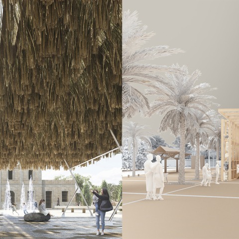 En el contexto actual de condiciones climáticas extremas, el pabellón ESPARTAL, que se ubicará en Casa Mediterráneo Alicante del 16 de octubre al 14 de noviembre, propone un cielo suspendido de esparto que filtra la luz, creando una sombra espesa que proporciona confort térmico y modifica el microclima de la Plaza Arquitecto Miguel López.