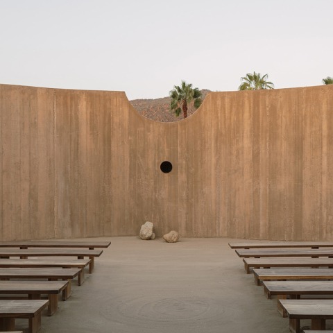 Un espacio ceremonial no religioso que dialoga estrechamente con el paisaje y el cielo circundantes del desierto de Baja California Sur. El íntimo recinto circular se encuentra semienterrado en el terreno desértico, simbolizando una relación con el paisaje circundante. La tierra desnuda bajo los pies y un techo al aire libre refuerzan una conexión trascendental con la tierra y el cosmos.