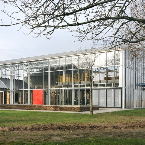 El invernadero sirve de espacio «intermedio» sin calefacción. El encanto del edificio radica en la superposición de las estructuras antiguas y las nuevas y en la comunicación con el entorno mediante un diseño en el que cada fachada tiene su propia perspectiva del entorno y viceversa.