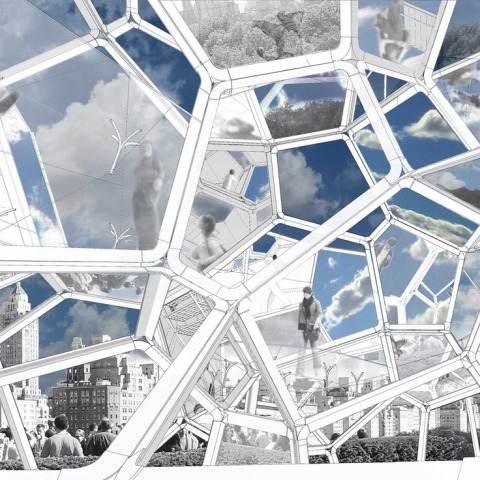 Como si fuese habitable, incorpora materiales transparentes y reflectantes, el trabajo también será accesible para los visitantes, (en número limitado y si el tiempo lo permite) lo que permitirá experimentar el interior de la estructura y ver la vistas exteriores según un recorrido interno específico. En contraste con el Central Park de Manhattan y el amplio espacio por encima y a lo lejos, la instalación de Tomás Saraceno en el tejado: Ciudad de las Nubes, Cloud Cities,(que es parte de la serie del artista Cloud Cities / Air Port City) sugiere un modelo de vida, interacción y cambio social. Esta es la 15aba propuesta realizada por un artista para el jardín de la cubierta Cantor del MET y es el primer encargo importante del artista en los Estados Unidos.
