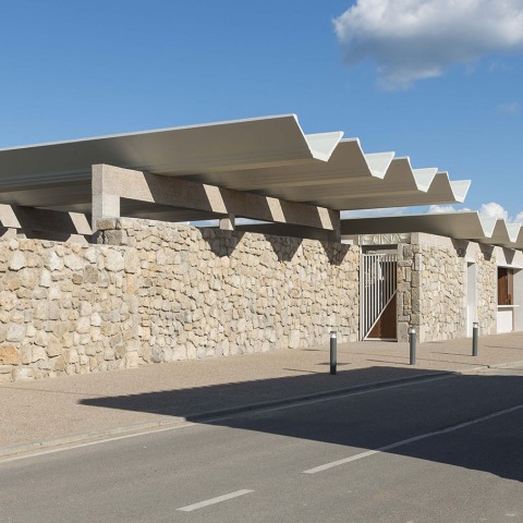 El proyecto simboliza la unión entre tradición y memoria (o un tiempo pasado), con lo mecánico y lo prefabricado (o lo que vendrá). Utilizando piedra sin tallar en largos muros, se apropia del lenguaje tradicional de los muros y vallas que identifican al municipio y, al mismo tiempo, sus grandes piezas de vigas prefabricadas utilizadas para la cubierta, reinterpretan la realidad tecnológica agraria, (con grandes molinos de viento, emergiendo entre los campos de trigo), a través de su disposición aparentemente flotante y aérea.