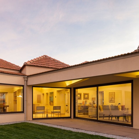 Unificando y restaurando estas dos casas, se creó un volumen en forma de "L", que definió un espacio exterior abrazado con una piscina.