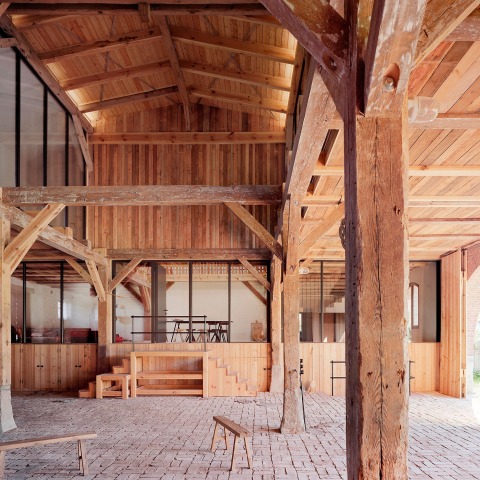 El granero fue construido hace 140 años, con una combinación de madera y mampostería de ladrillo. En su momento fue un edificio ultramoderno y funcional, pero después de que el granero se vendiese y se dividiese, se modificó la estructura, para poder albergar ganado y a dos familias, por lo que se transformó en dos casas adosadas. Una de ellas ha sido recientemente reformada por el arquitecto Thomas Kröger para una familia joven, usando el lenguaje preexistente de la casa y adaptándola siguiendo sus propias reglas para re-inventarla.