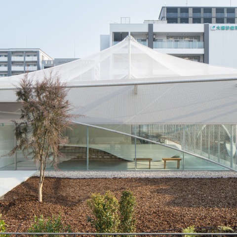 El entrelazado de la estructura de acero arqueada que soporta la malla y la estructura de acero en forma de rejilla que sostiene las cajas rectangulares interiores garantiza una resistencia sísmica suficiente a pesar de la delgadez de sus elementos. En este sentido, se podría decir que es una versión moderna de un arbotante con marcos exteriores e interiores entrelazados. El envoltorio de malla también ahorra energía al bloquear los rayos del sol.