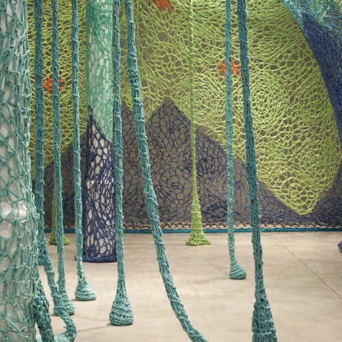 Arte agua arte aire arte. Dentro del pez, sueños ancestrales, dentro del pez me relajo y siento, no pienso, sólo siento, el aire, el agua, el tiempo, siento dentro de mí toda una eternidad, siento mis poros respirando, siento la vida, la tierra, el océano, oscuro, misterioso y tierno, mojado e infinito, un océano dentro otro fuera, siento mis dedos, siento el tamborilear del croché, me siento yo mismo y a los demás, me siento otro yo, siento el habla, siento un canto perdido, encuentro, siento la sal en la lengua, qué lengua hablamos pez, eterno tierno pez, enséñanos pez, peces, pez nadando, nada pez, gracias pez, un día todos fuimos peces.”