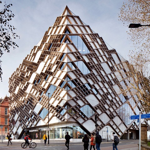 Diseñado por Twelve Architects y construido por Balfour Beatty, el edificio – conocido como The Diamond por su fachada única – es un equipamiento de 19.500 m2, que alberga laboratorios especializados de ingeniería, salas de conferencias, espacios flexibles de enseñanza, talleres, un centro de recursos de aprendizaje y ambientes de estudio formal e informal para 5.000 estudiantes.