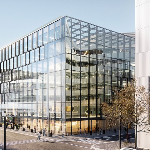 Los ocupantes circulan por el centro del edificio, en el punto de pellizco entre los dos vacíos. Esta área es el corazón social del edificio, mientras que los espacios más tranquilos y apartados se ubican a lo largo de la periferia de los pisos. La fachada refleja la organización interior con un gradiente desde las ventanas más tradicionales en las estaciones de trabajo hasta la total transparencia en los atrios.