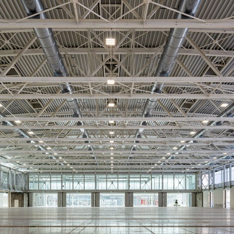 Los pabellones, de 75 metros de luz de un solo tramo sin soportes centrales, permiten diferentes usos (actualmente el pabellón 30 se utiliza como cancha de baloncesto). Gracias a las grandes superficies translúcidas, cada espacio se beneficia de la luz natural, homogénea y difusa; estas superficies durante el día absorben la atmósfera circundante y por la noche crean una estructura llena de luz que se erige sobre el paisaje.