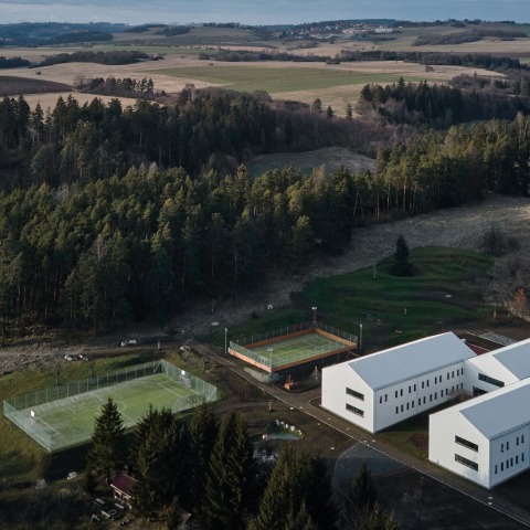 El nuevo complejo ha reemplazado el edificio temporal e inadecuado original. El sitio en la parte norte de Ostrov u Macochy es adyacente al área con casas familiares. La compacidad del pueblo se conserva al interconectar las estructuras de los edificios con vegetación madura. El edificio en sí está ubicado en la parte sureste del sitio y deja una amplia franja de espacio verde que rodea el pueblo.